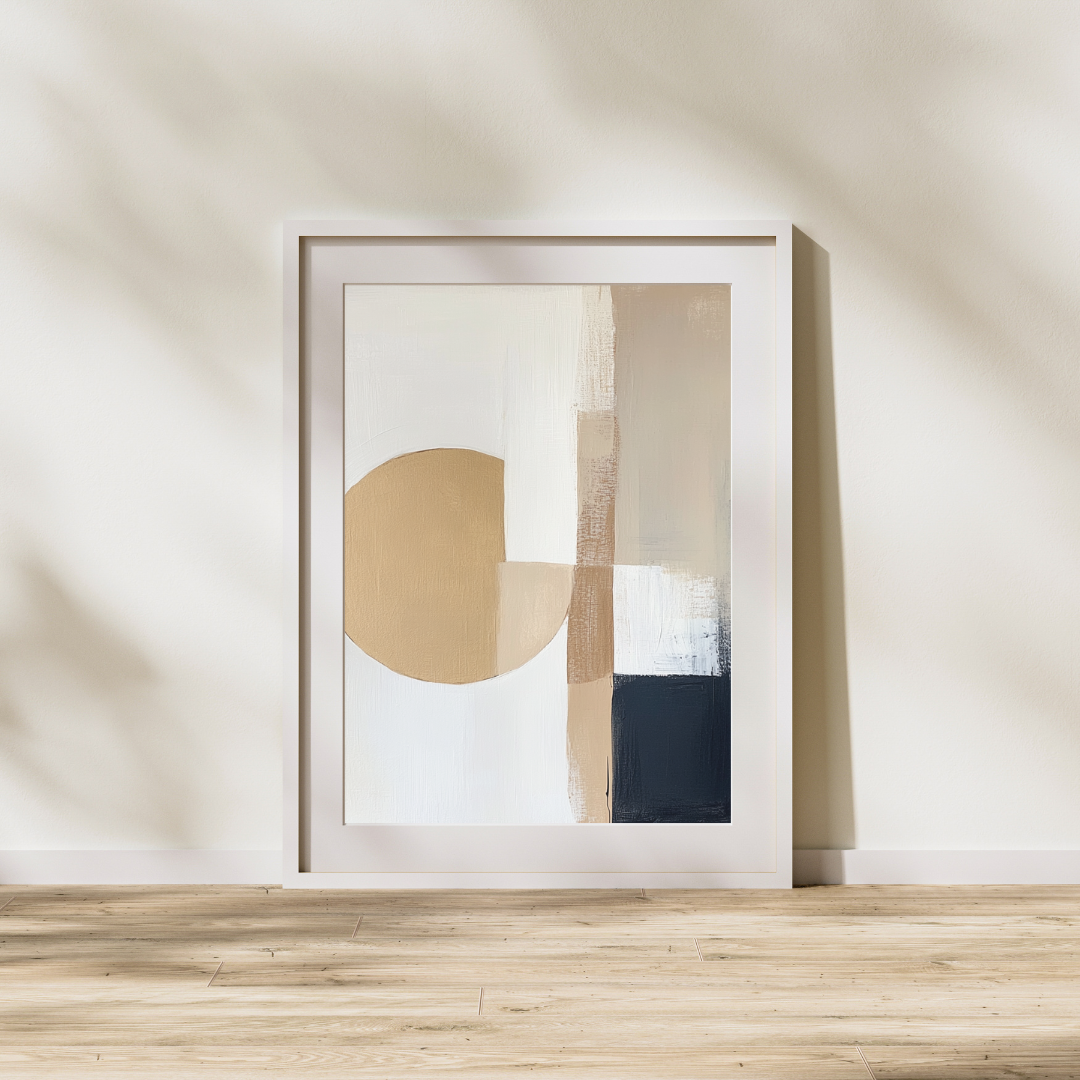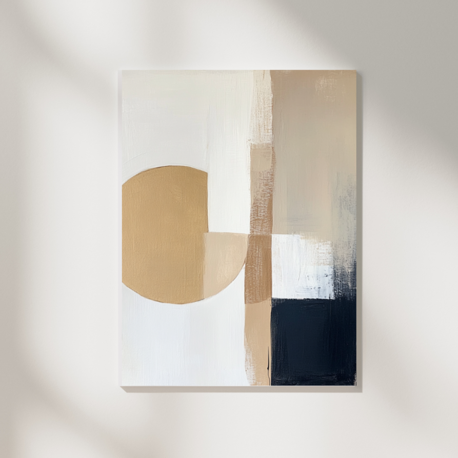 Pintura abstracta minimalista inspirada en el diseño Wabi Sabi y Japandi, con texturas en capas y patrones orgánicos